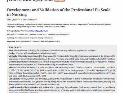 Nursing Open Dergisinde Yayın Başarısı: “Professional Fit Scale in Nursing”
