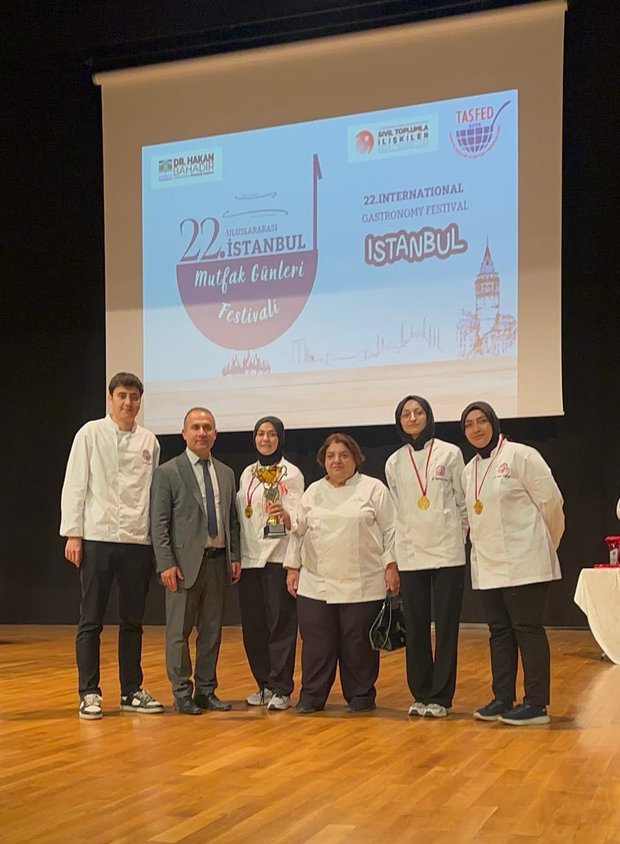 Aşçılık Programı 1. sınıf öğrencileri Arife Ravzanur Yüce, Hilal Yıkılmaz, Semih Uzun ve Zeynep Sena Tuğtağ, 22. Uluslararası İstanbul Mutfak Festivali kapsamında düzenlenen yarışmada şampiyon oldular.