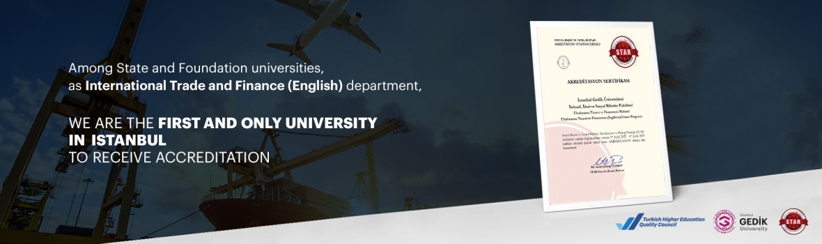Istanbul Gedik University, Faculty of Economics, Administrative and Social Sciences, Department of International Trade and Finance (English) has been granted accreditation by the Social Humanities Basic Sciences Accreditation and Rating Association (STAR), based on an evaluation, with the accreditation valid from 02/04/2025 to 02/04/2030.