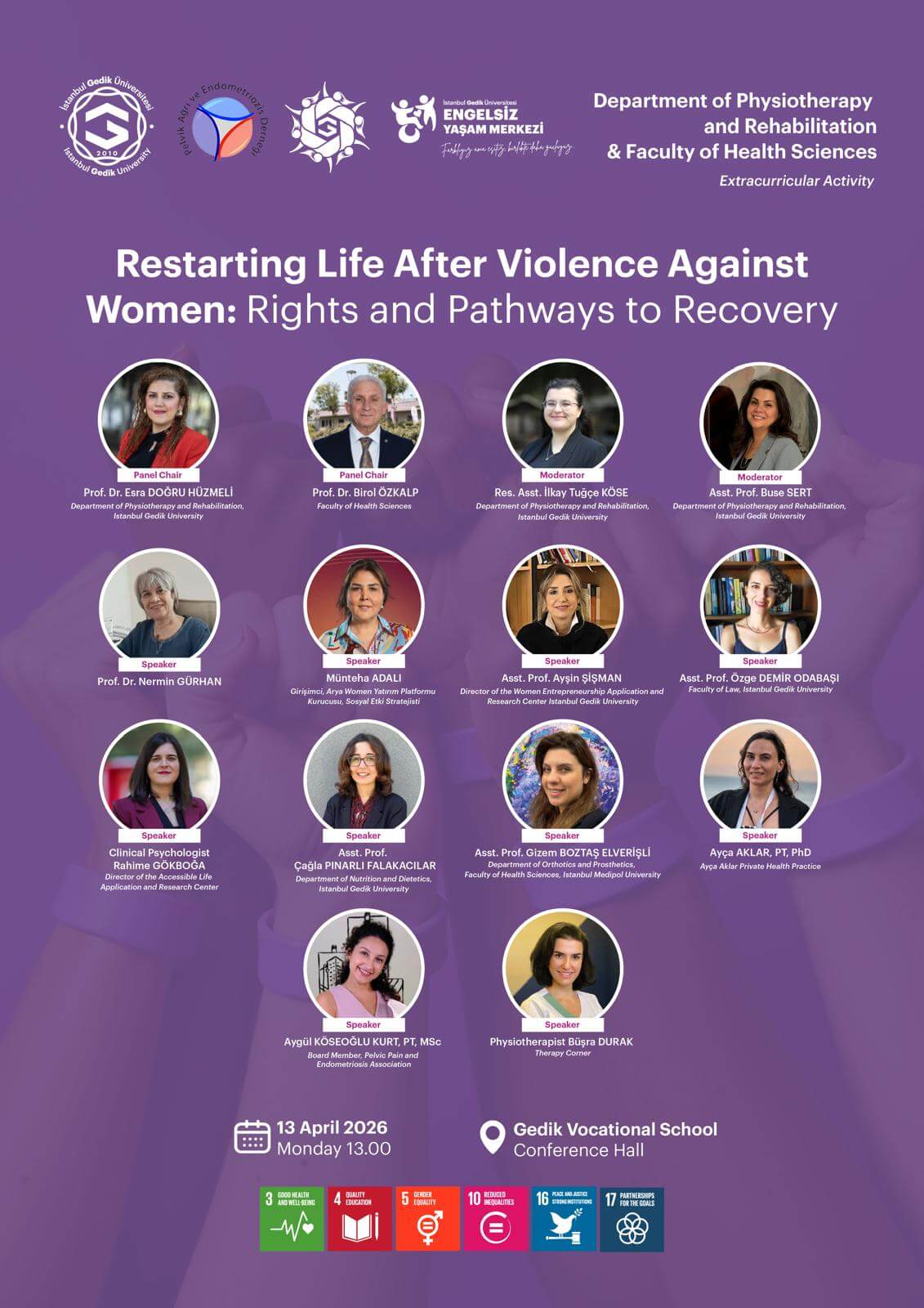 The panel titled “Rebuilding Life After Violence Against Women: Rights and Paths to Recovery”, organized by the Department of Physiotherapy and Rehabilitation at Istanbul Gedik University in collaboration with the Faculty of Health Sciences, the Disabled Life Application and Research Center, the Women Entrepreneurship Application and Research Center, and the Pelvic Pain and Endometriosis Association, was held on April 13, 2026, at the Gedik Vocational School Conference Hall.