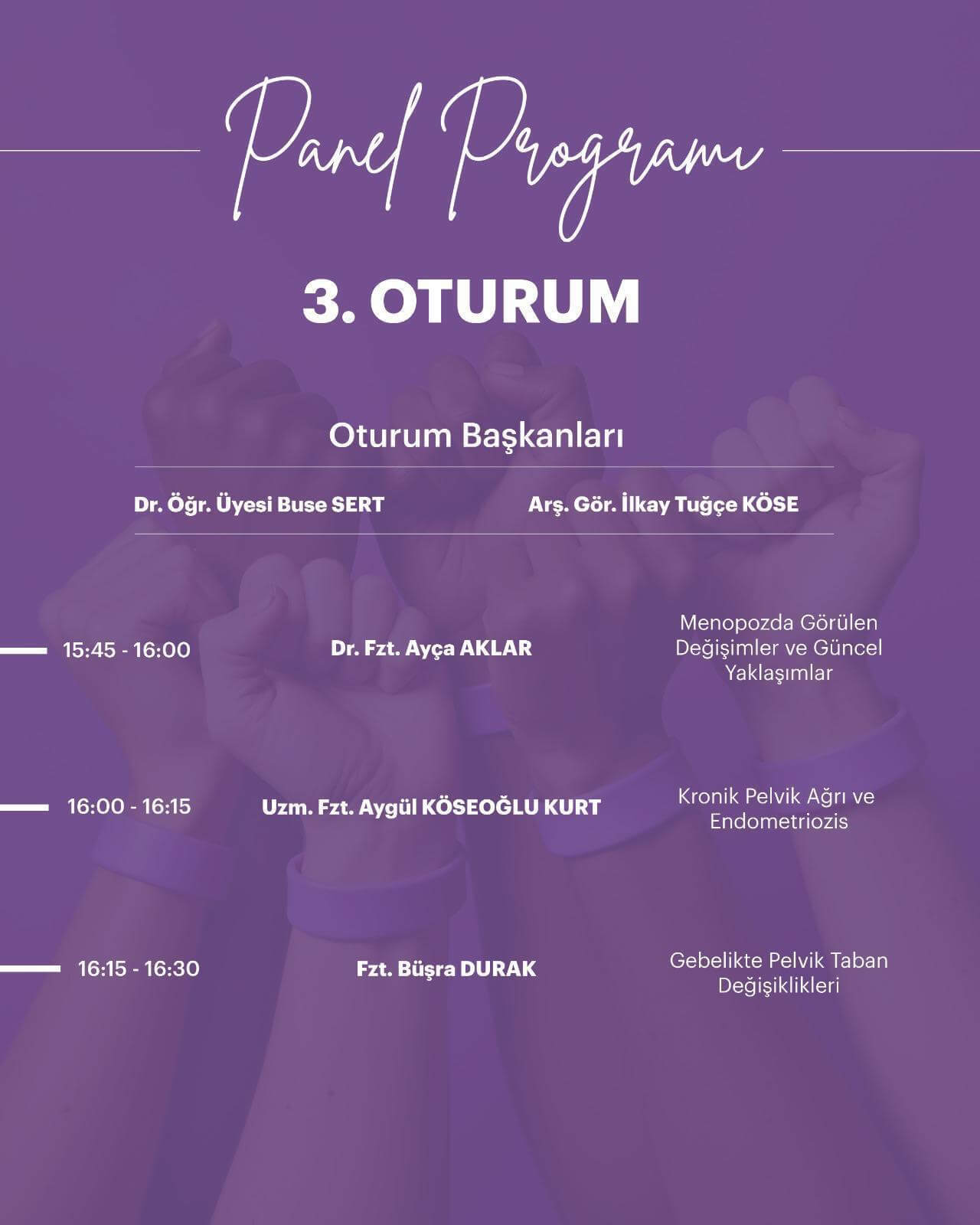 The panel featured the following speakers: Prof. Dr. Nermin GÜRHAN, Münteha ADALI, Asst. Prof. Ayşin ŞİŞMAN, Asst. Prof. Özge DEMİR ODABAŞI, Clinical Psychologist Rahime GÖKBOĞA, Asst. Prof. Çağla PINARLI FALAKACILAR, Asst. Prof. Buse SERT, Asst. Prof. Gizem BOZTAŞ ELVERİŞLİ, Dr. Physiotherapist Ayça AKLAR, Specialist Physiotherapist Aygül KÖSEOĞLU KURT, and Physiotherapist Büşra DURAK.