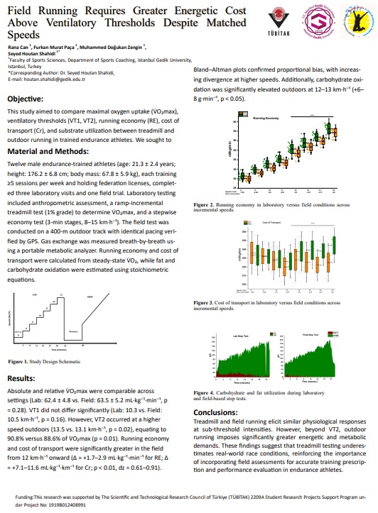 The study titled “Field Running Requires Greater Energetic Cost Above Ventilatory Thresholds Despite Matched Speeds” was presented as a poster at the BIOMECHANICS 2025 – International Conference of the Polish Society of Biomechanics, held in Poland between 22–24 October 2025, under the theme “Quality of Life in Interdisciplinary Approach.”