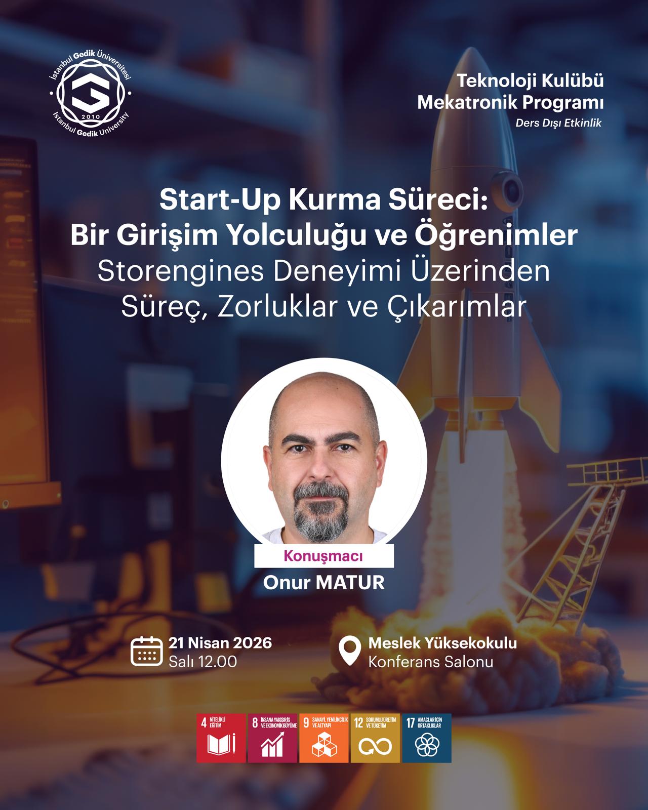 ETUAM, Mekatronik ve Elektrik Programları tarafından düzenlenen; “Start-up dünyasında bir fikrin filizlenmesinden büyüme evrelerine uzanan o zorlu ama heyecan verici yolculuğu; bizzat deneyimledikleri pratik tecrübelerle harmanlayarak bizlere aktaran Onur Matur’a teşekkür ederiz. Girişimcilik ekosistemine dair paylaştığı değerli içgörüler ve vizyoner bakış açısı hepimiz için ilham vericiydi. Hem öğrencilerimiz hem de biz akademisyenler açısından teşvik edici ve öğretici bir söyleşi oldu.
