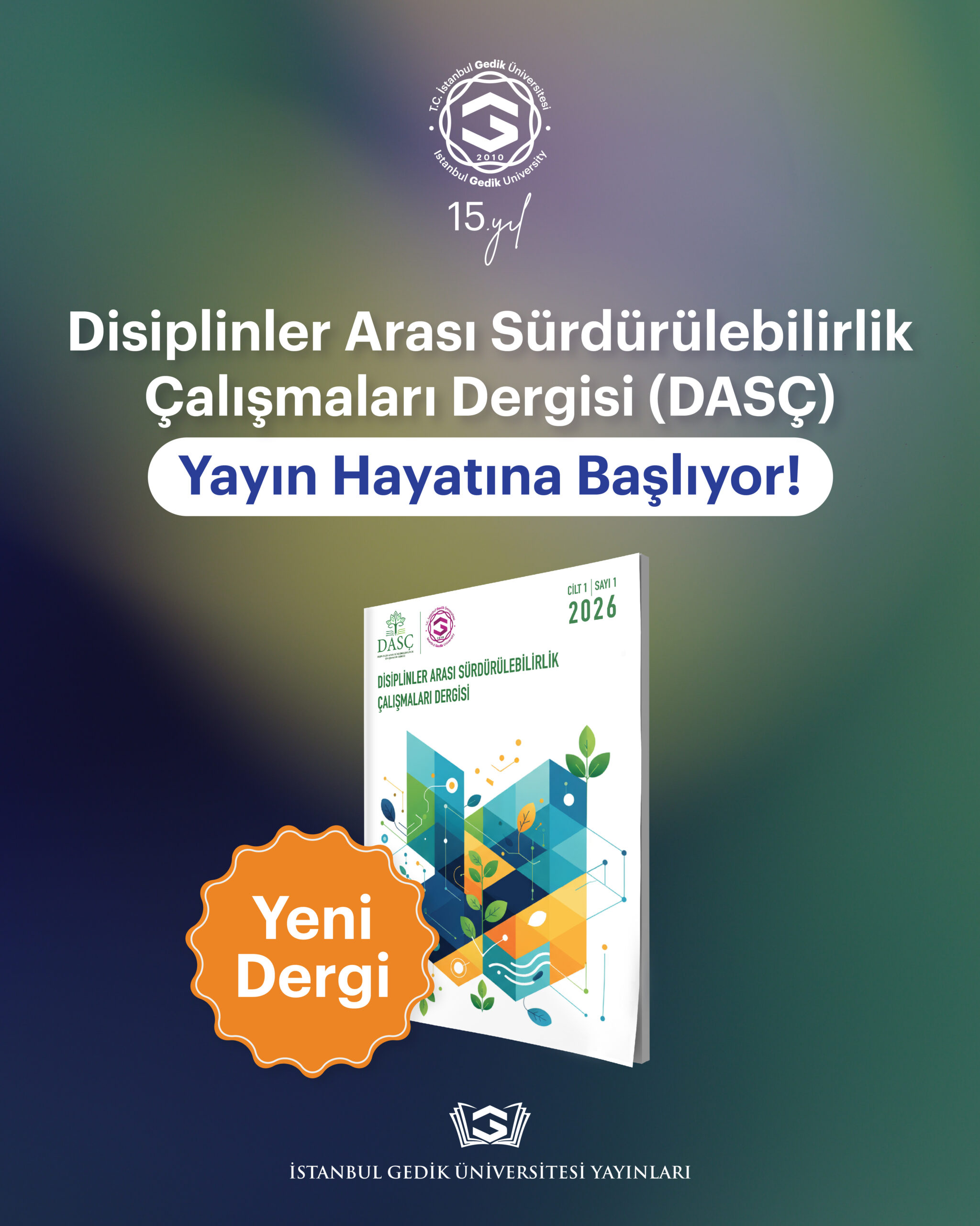 İstanbul Gedik Üniversitesi Sürdürülebilirlik Ofisi tarafından yayımlanacak olan Disiplinler Arası Sürdürülebilirlik Çalışmaları Dergisi (DASÇ), ilk sayısını Şubat 2026’da yayımlamak üzere DergiPark üzerinden makale kabulüne başlamıştır. Dergi; sürdürülebilirliğin çok boyutlu yapısını disiplinler arası bir yaklaşımla ele alan akademik ve bilimsel çalışmalara yer veren, çift-kör hakemli ve açık erişimli bir yayın niteliğindedir.
