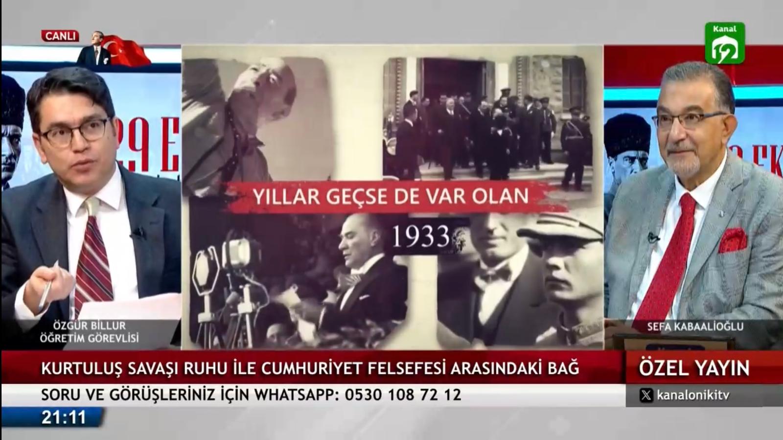Atatürk İlkeleri ve İnkılap Tarihi Uygulama ve Araştırma Merkezi (ATAMER) Müdürümüz Öğr. Gör. Özgür Billur, Kanal 12’de Sefa Kabaalioğlu’nun hazırlayıp sunduğu 29 Ekim Özel Programı’na konuk oldu. Cumhuriyet’in Türk milleti için sadece bir yönetim biçimi demek olmadığını, bağımsızlık ve Türk Devrimi’nin tümünü ifade ettiğini vurgulayan Billur; halkın eğitim ve kültür seviyesi arttırılmadan Cumhuriyet’in hedeflediği demokratik düzenin tesis edilemeyeceğini söyledi. Yurttaşlık bilincine sahip vatandaşların çabalarıyla Mustafa Kemal Atatürk’ün gösterdiği çağdaş medeniyet seviyesine ulaşılacağının vurgulandığı programın tamamını izlemek için tıklayınız .
