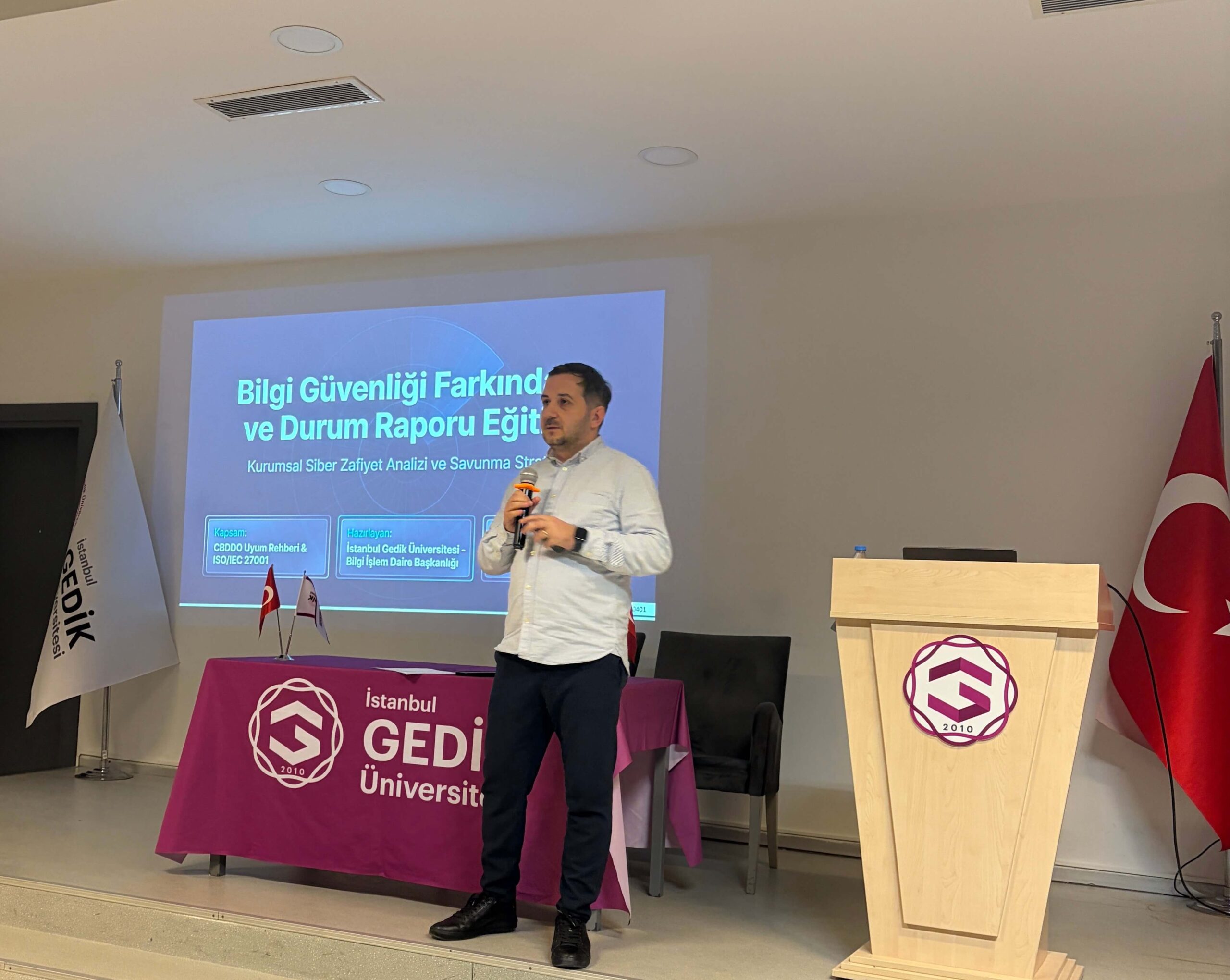 Bilgi İşlem Daire Başkanlığı koordinasyonunda düzenlenen Bilgi Güvenliği Farkındalık Eğitimi, çok geniş bir katılımcı kitlesiyle başarıyla tamamlandı.