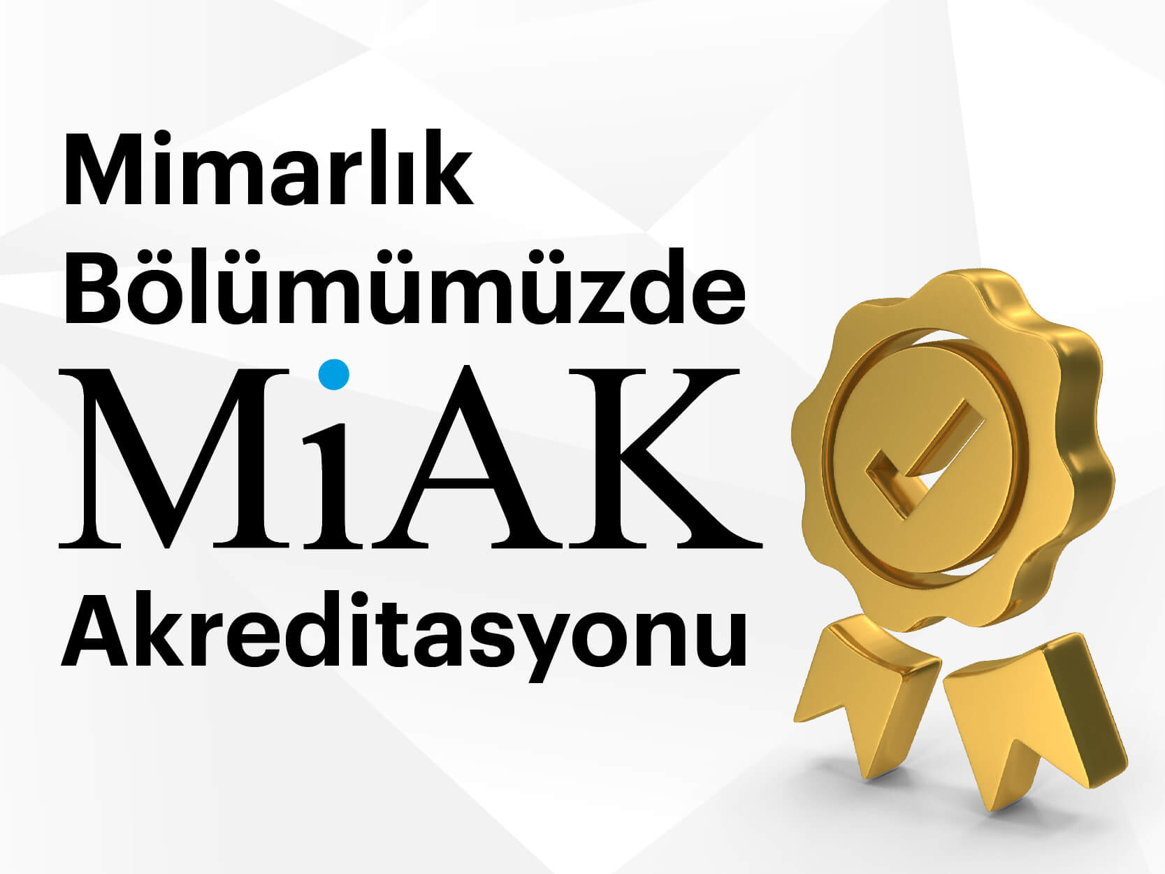 Üniversitemizin kalite güvencesi ve ulusal başarı vizyonu doğrultusunda yürütülen çalışmalar sonucunda, MİAK (Mimarlık Akreditasyon Kurulu), tarafından yapılan değerlendirmeler neticesinde Mimarlık Bölümümüz akredite edilmiştir.