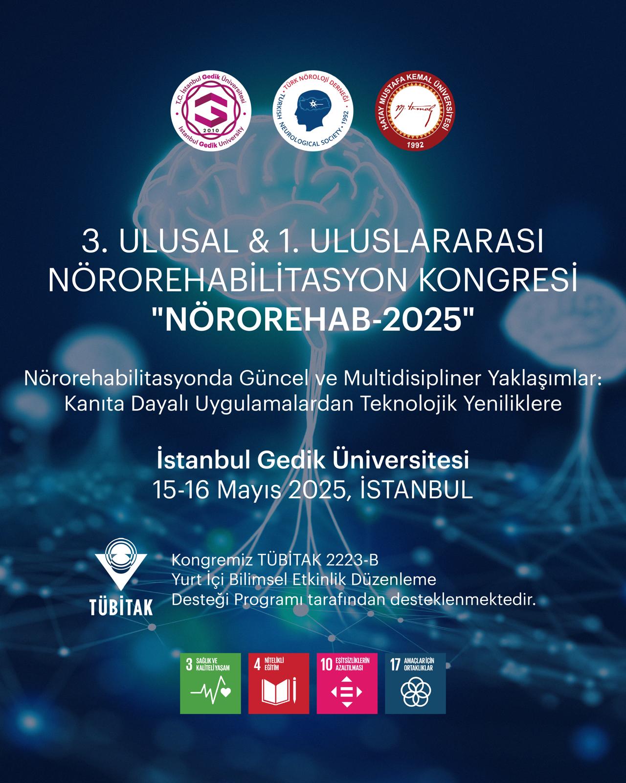 15–16 Mayıs 2025 tarihleri arasında gerçekleştirilen NÖROREHAB-2025; nörolojik rehabilitasyon alanındaki güncel bilimsel gelişmelerin paylaşılması, multidisipliner iş birliğinin güçlendirilmesi ve genç araştırmacılara katkı sağlanması amacıyla yoğun ilgiyle hayata geçirilmişti.