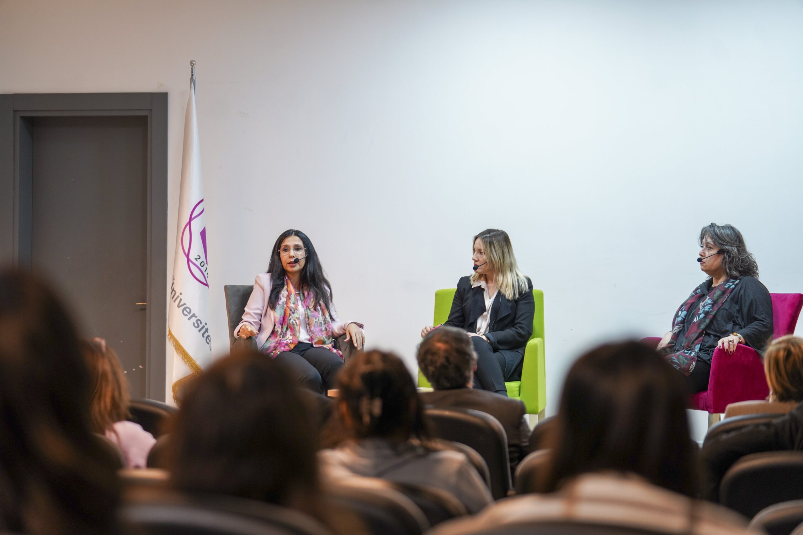 Mimarlık, Şehircilik ve Tasarım Uygulama ve Araştırma Merkezi ile Atatürk İlkeleri ve İnkılap Tarihi Uygulama ve Araştırma Merkezi’nin birlikte düzenlediği “Türkiye’de Kadın Olmak” başlıklı söyleşi 10 Aralık günü Kartal Konferans Salonu’nda yapıldı. Rektör Vekilimiz Prof. Dr. Feriha Erfan Kuyumcu yaptığı açış konuşmasında, kadınların geri kalmasının sadece kadınların geri kalması değil toplumun tümünün geri kalması demek olduğunu vurguladı.