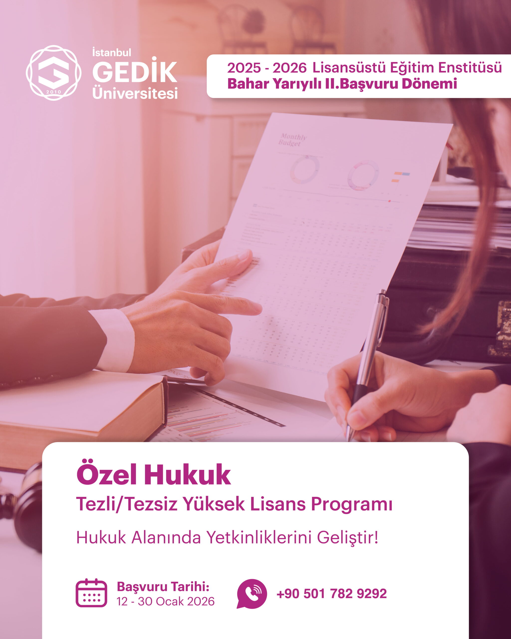 7 Oca 2026 2025-2026 Özel Hukuk Lisansüstü Eğitim Enstitüsü Bahar Yarıyılı 2. Başvuru Dönemi 2025-2026 Bahar yarıyılı ikinci başvuruları 12-30 Ocak 2026 tarihleri arasında yapılacaktır.