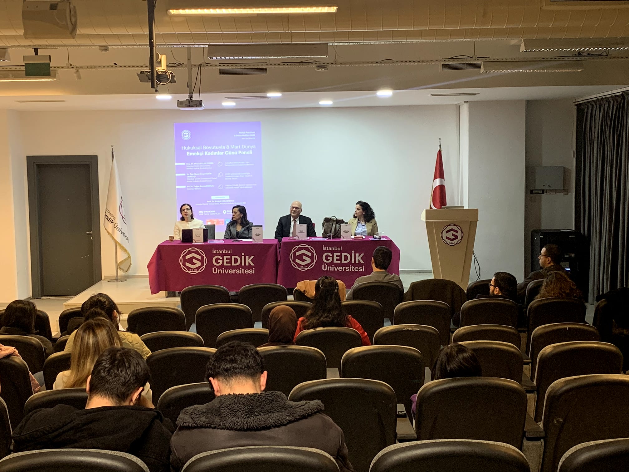 İstanbul Gedik Üniversitesi Hukuk Fakültesi ile İnsan Hakları Uygulama ve Araştırma Merkezi tarafından, 8 Mart Dünya Emekçi Kadınlar Günü kapsamında “Hukuksal Boyutuyla 8 Mart Dünya Emekçi Kadınlar Günü Paneli” gerçekleştirildi.