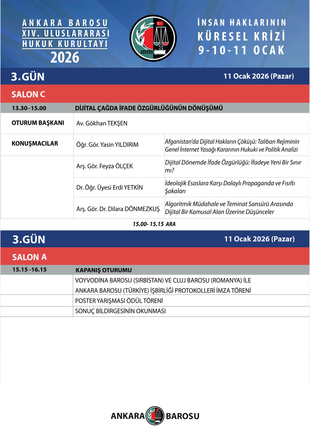 İstanbul Gedik Üniversitesi Hukuk Fakültesi öğretim üyeleri Prof. Dr. Kutluhan Bozkurt ve Dr. Öğr. Üyesi Erdi Yetkin, 9-10-11 Ocak tarihlerinde Ankara Barosu tarafından düzenlenen Uluslararası Hukuk Kurultayı 2026 – İnsan Haklarının Küresel Krizi isimli kurultayda tebliğ sunumu gerçekleştirmişlerdir.