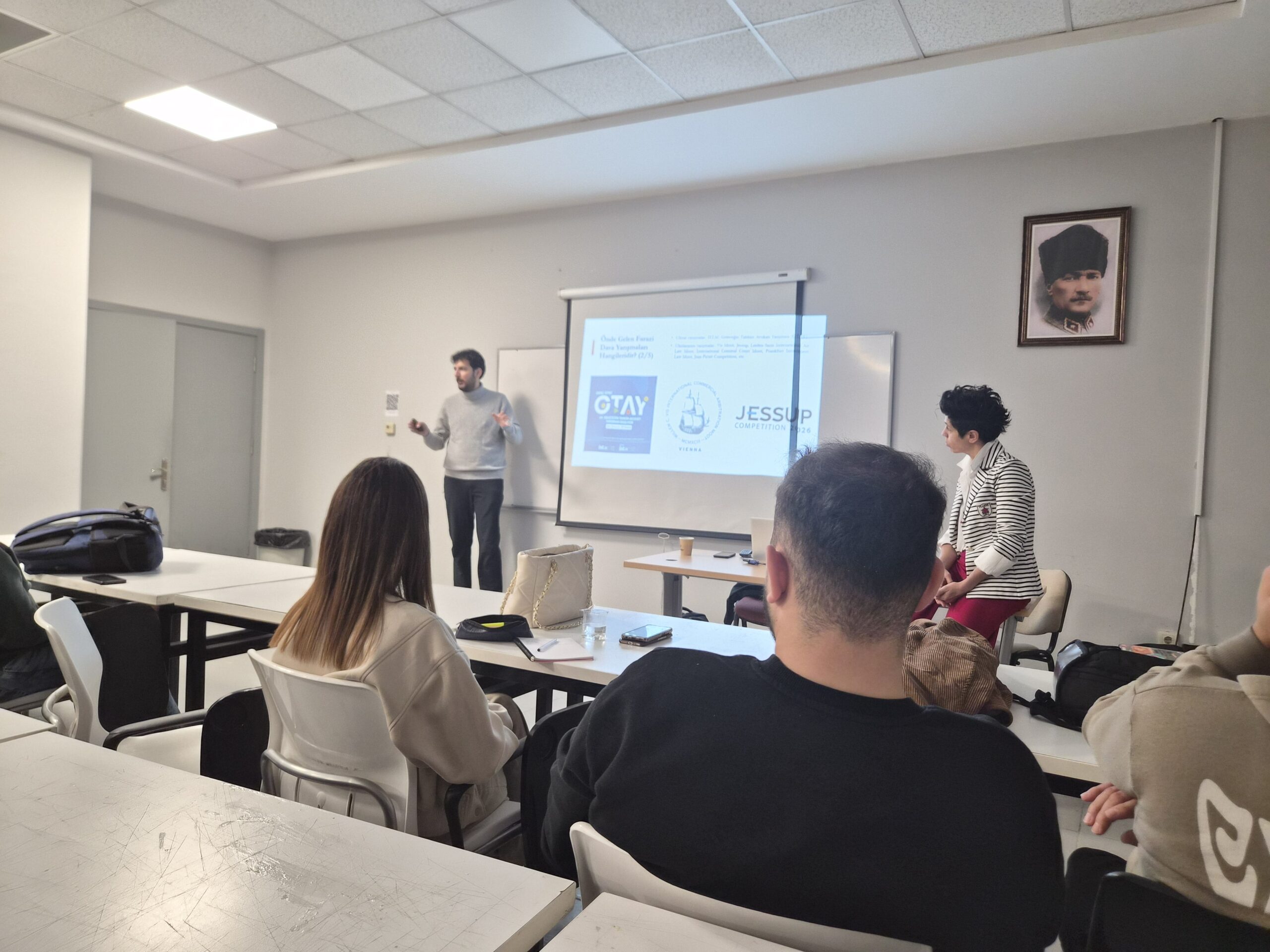 Galatasaray Üniversitesi Hukuk Fakültesi Medeni Hukuk Anabilim Dalı Araştırma Görevlisi Yankı Yener’in konuşmacı olduğu “Ulusal ve Uluslararası Farazi Dava Yarışmaları” konulu ders dışı etkinlik, İstanbul Gedik Üniversitesi Ticaret Hukuku Anabilim Dalı Doktor Öğretim Üyesi Başak Someren Alp moderatörlüğünde, farazi mahkeme salonumuzda gerçekleştirilmiştir.