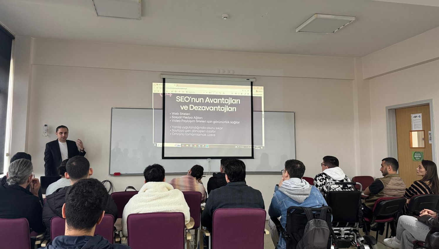 Etkinlikte Milat Gazetesi haber müdür Yunus Emre Kabaoğlu ve SEO editörü Münevver Kabaoğlu sektörel deneyimlerini aktarırken öğrencilerden ve öğretim elemanlarından gelen soruları yanıtladılar.
