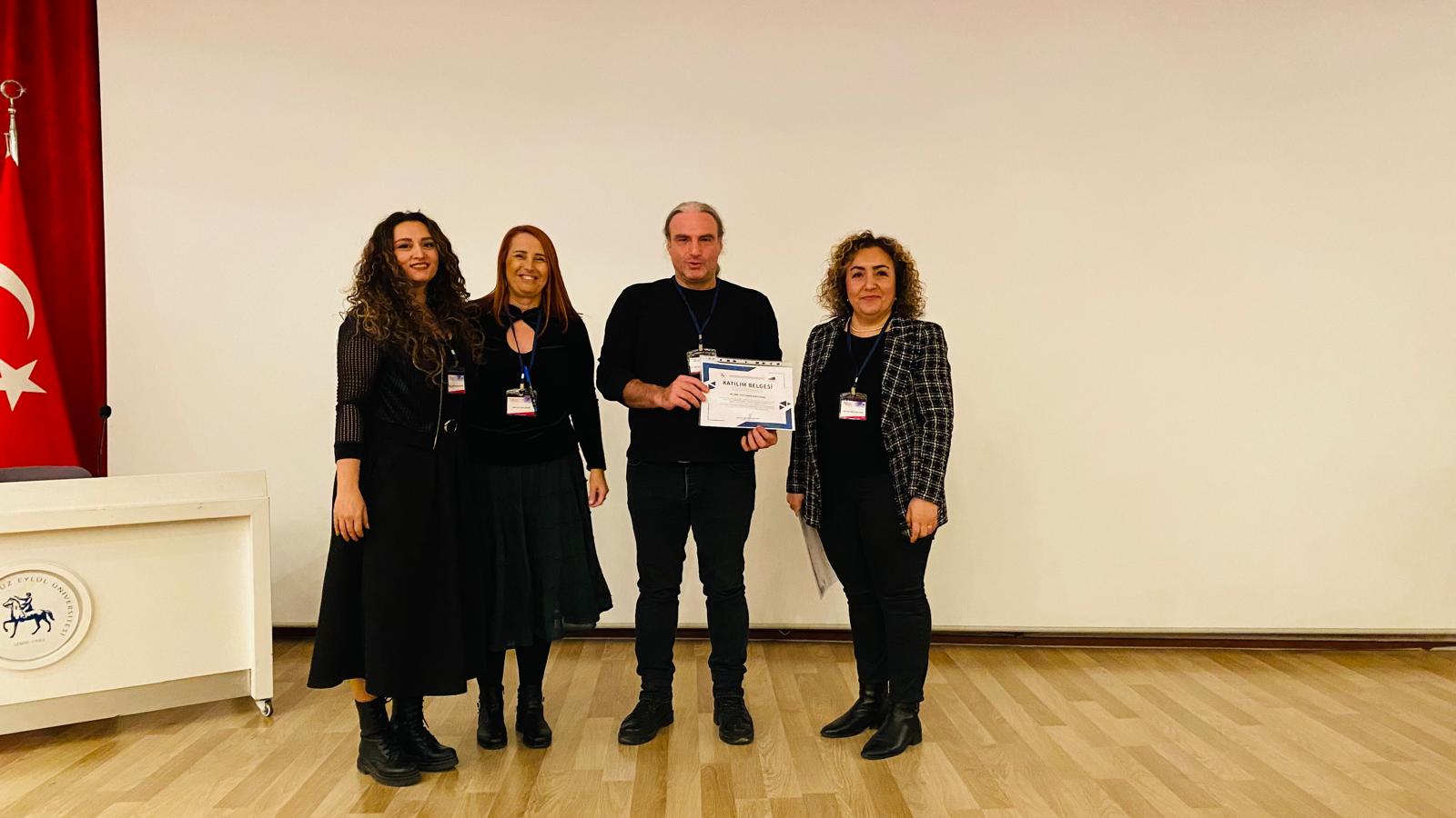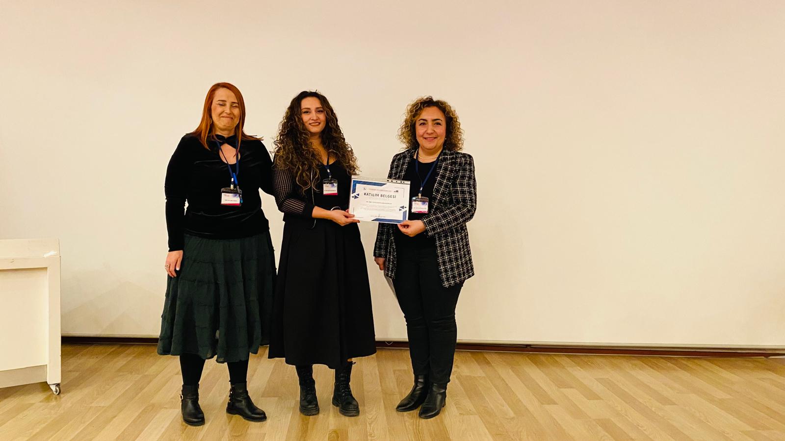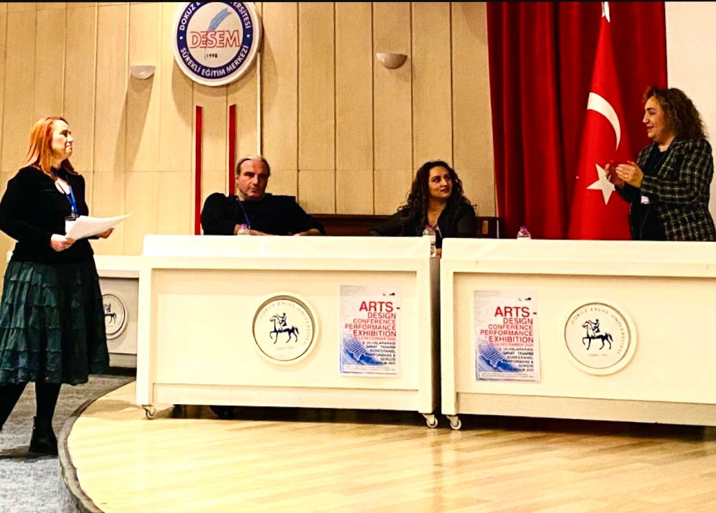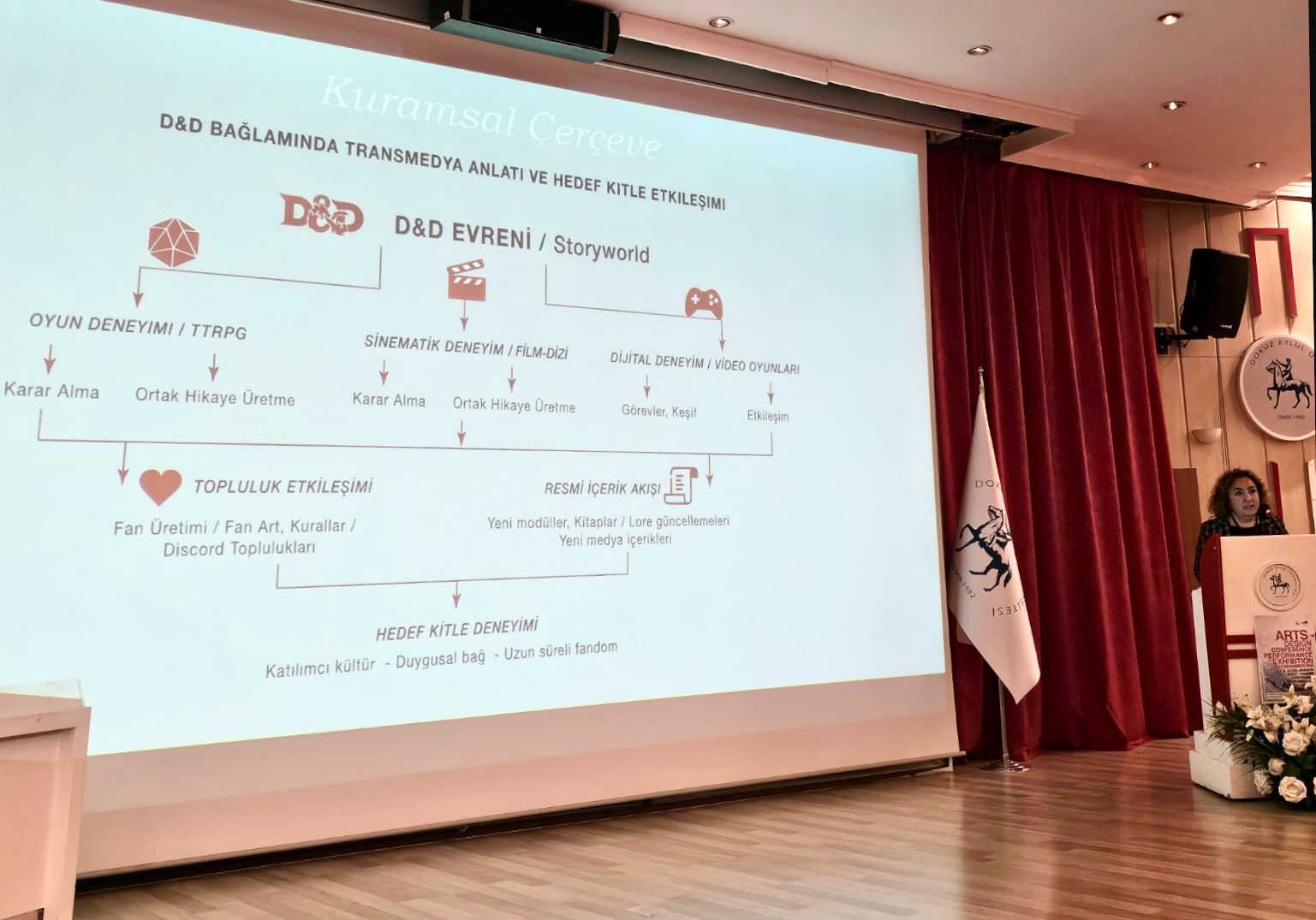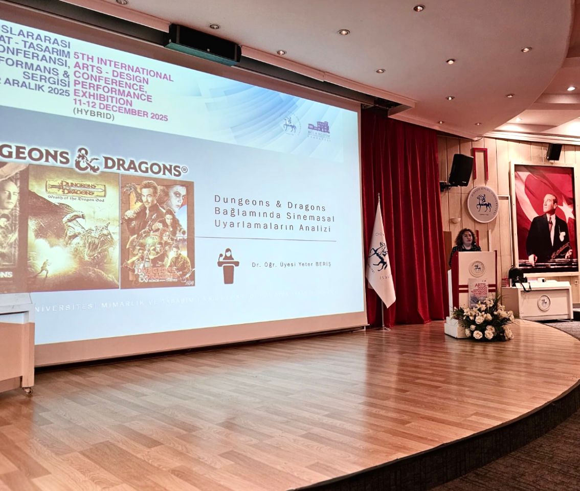 Dokuz Eylül Üniversitesi Güzel Sanatlar Eğitimi bölümleri tarafından 11- 12 Aralık 2025’te İzmir’de düzenlenen 5. Uluslararası Sanat- Tasarım Konferansı, Performans & Sergisi için Mimarlık ve Tasarım Fakültesi Dijital Oyun Tasarımı bölümü öğretim üyeleri, Dr. Öğr. Üyesi Yeter Beriş, Dr. Öğr. Üyesi Engin Deniz Erbaş, Dr. Öğr. Üyesi Şerife Seda Bozpolat davet edildikleri özel oturuma katıldılar. Hazırlanan özel sempozyum oturumunda Dijital Oyun Tasarımı bölüm başkanı Dr. Öğr. Üyesi Yeter Beriş oturum başkanı olarak “Dungeons & Dragons Bağlamında Sinemasal Uyarlamaların Analizi” başlıklı sözlü bildirisini sunmuştur. Özel oturumun ikinci bildirisi olarak Dr. Öğr. Üyesi Engin Deniz Erbaş “Dijital Oyunlarda Temsil Analizi İçin Üç Katmanlı Model Önerisi: Sovereign Syndicate Örneği” adlı sözlü bildirisini sunmuştur. Özel oturumun üçüncü bildirisi olarak ise Dijital Oyun Tasarımı bölüm başkan yardımcısı Dr. Öğr. Üyesi Şerife Seda Bozpolat “Dijital Estetik ve Anlatı Bağlamında GRIS Dijital Oyunu Tasarım İncelemesi” isimli sözlü bildirisini sunmuştur.