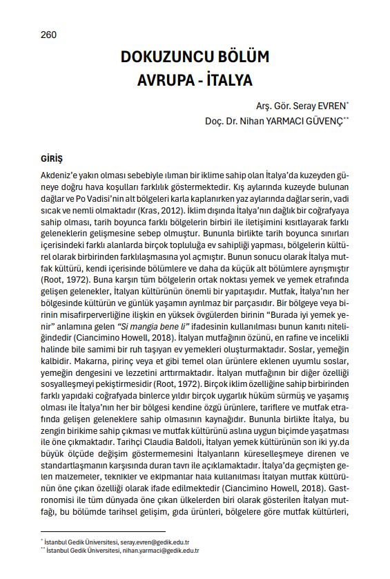 DOÇ. DR. NİHAN YARMACI GÜVENÇ VE ARŞ. GÖR SERAY EVREN’İN AVRUPA-İTALYA MUTFAĞI KİTAP BÖLÜMÜ YAYIMLANDI