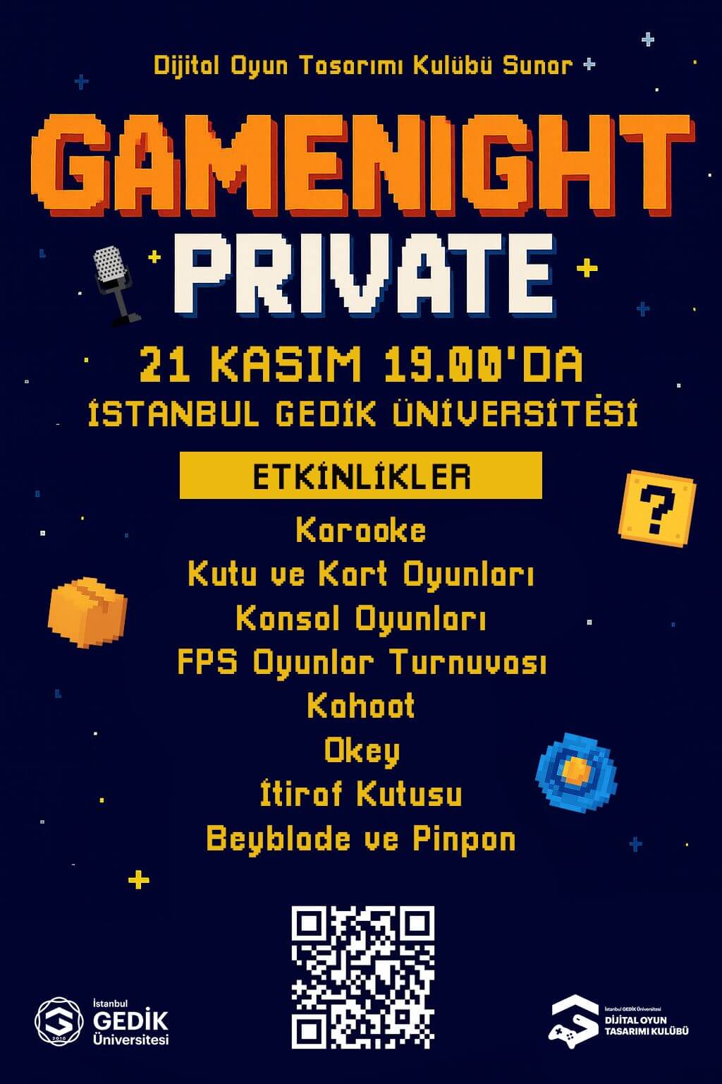 İstanbul Gedik Üniversitesi Dijital Oyun Tasarımı Kulübü, 21 Kasım akşamı Kartal Kampüsü İnovasyon Merkezi’nde düzenlediği “Game Night Private” etkinliği ile oyun dünyasının genç yeteneklerini buluşturdu.