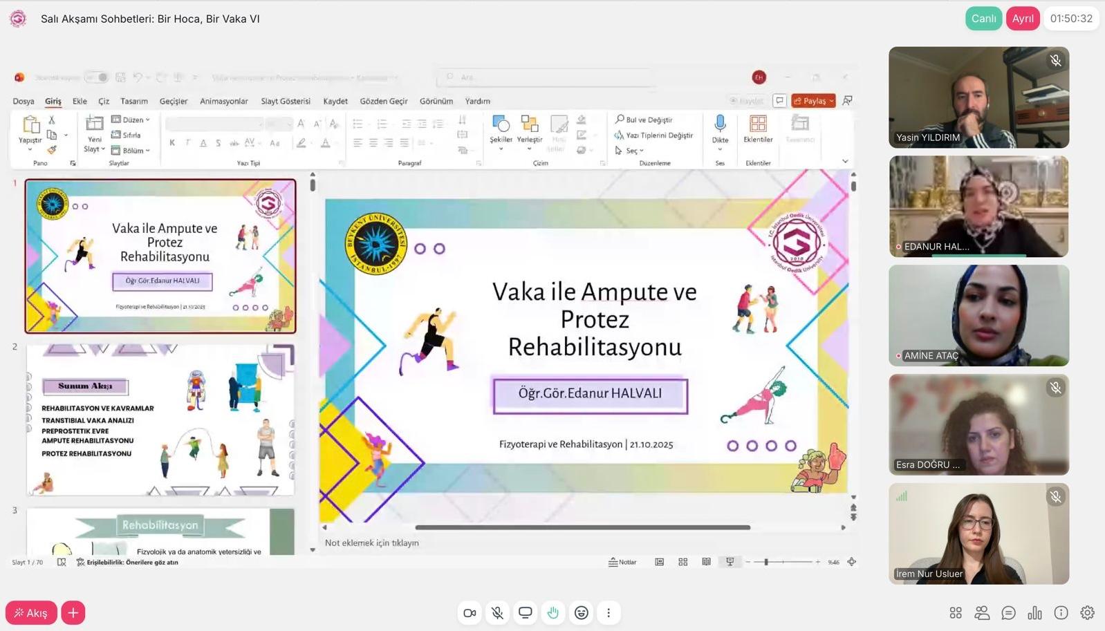 Salı Akşamı Sohbetleri: Bir Hoca, Bir Vaka” konferanslarımızın altıncısı olan “Vaka ile Ampute ve Protez Rehabilitasyonu” isimli etkinliğimiz 21 Ekim 2025 tarihinde gerçekleştirildi.