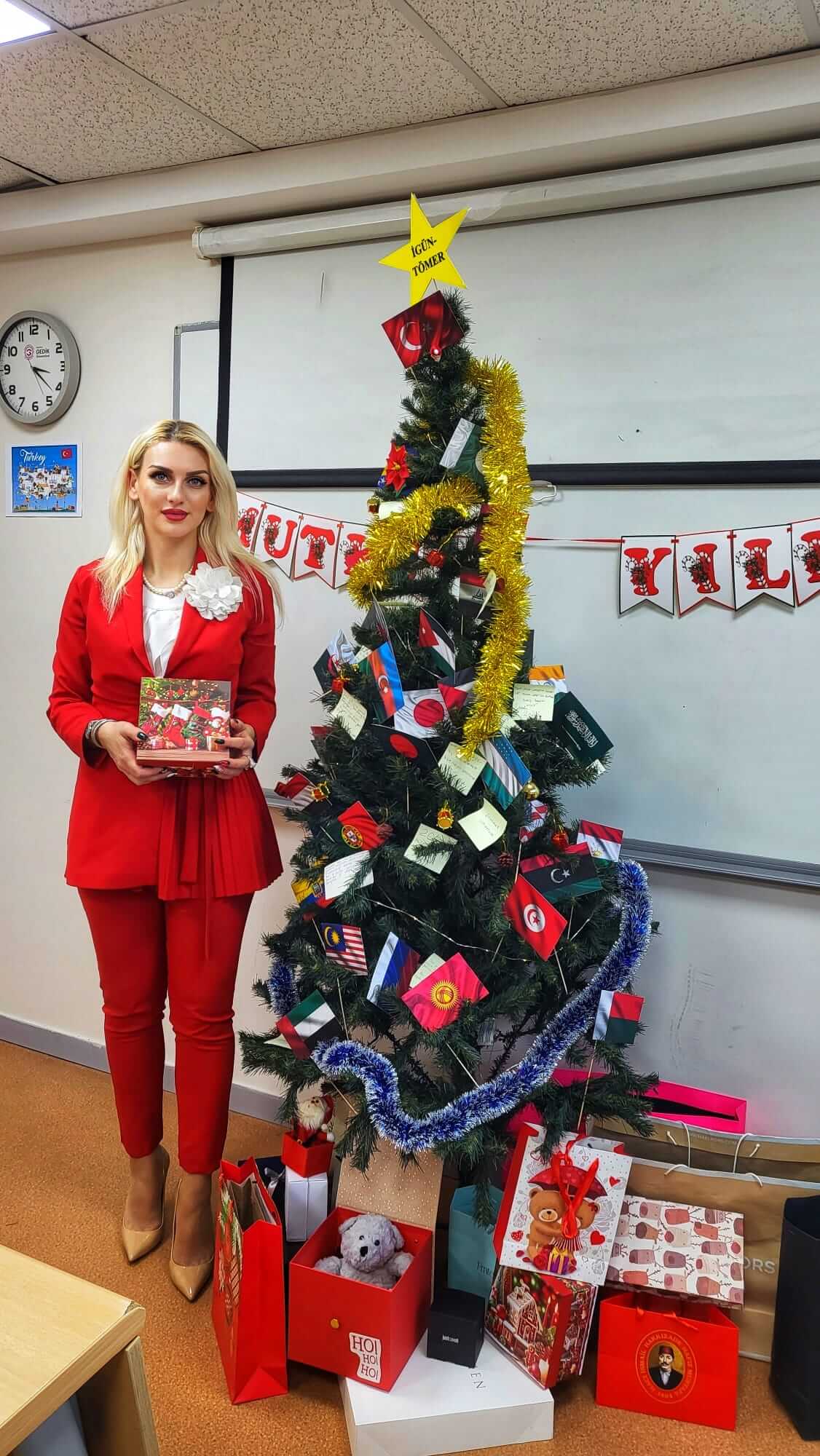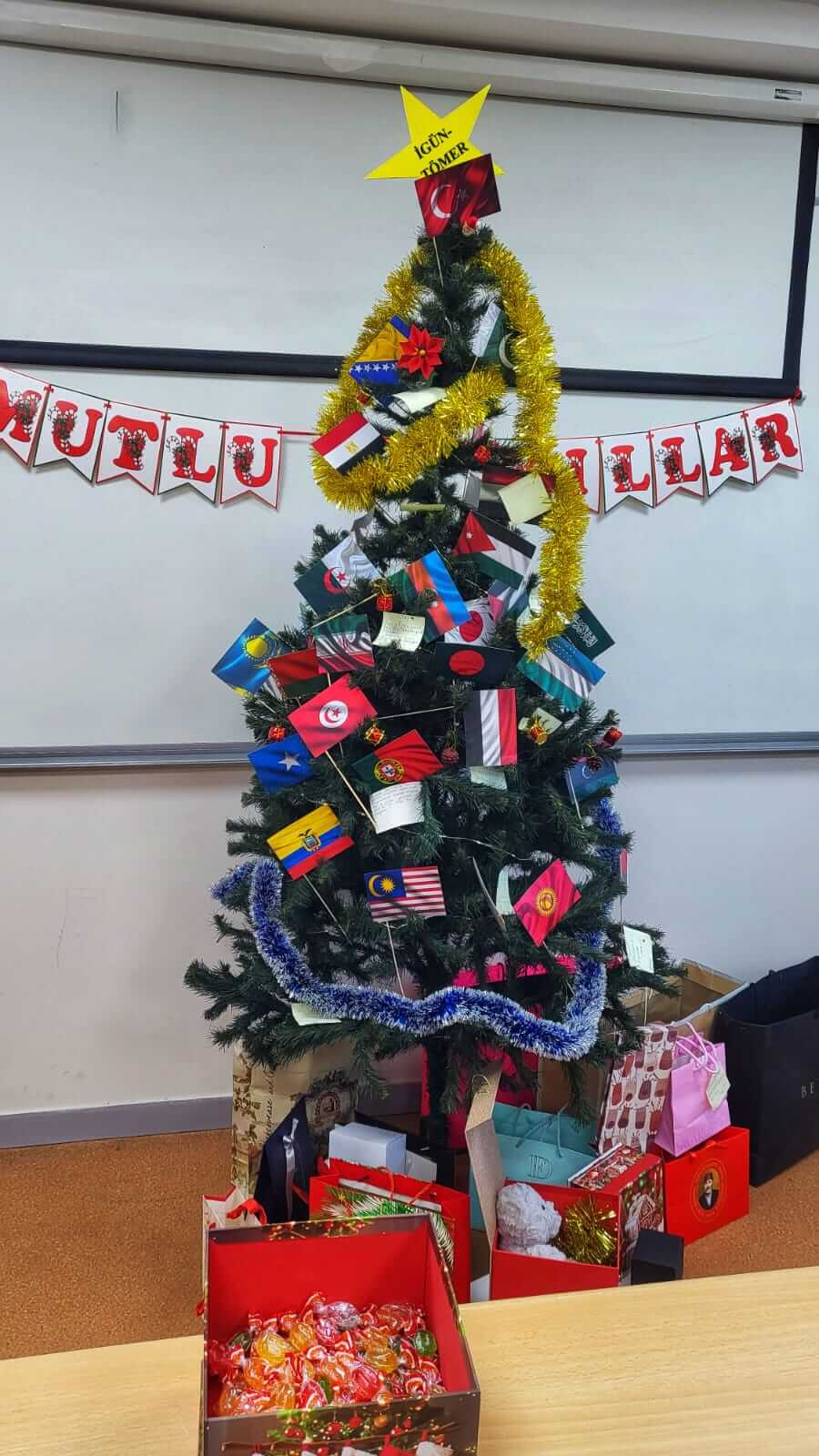 Öğrenciler, “Yeni Yıldan Beklentilerim” temasıyla hazırladıkları dilek kartlarını paylaşarak yılbaşı ağacını süsledi. Kendi ülkelerinin bayraklarını da ağaca asan öğrenciler, etkinliğe kültürel bir renk kattı. Böylece yılbaşı ağacı, farklı ülkelerden gelen öğrencilerin bir araya gelişini ve birlikteliğini simgeleyen bir görünüme kavuştu.