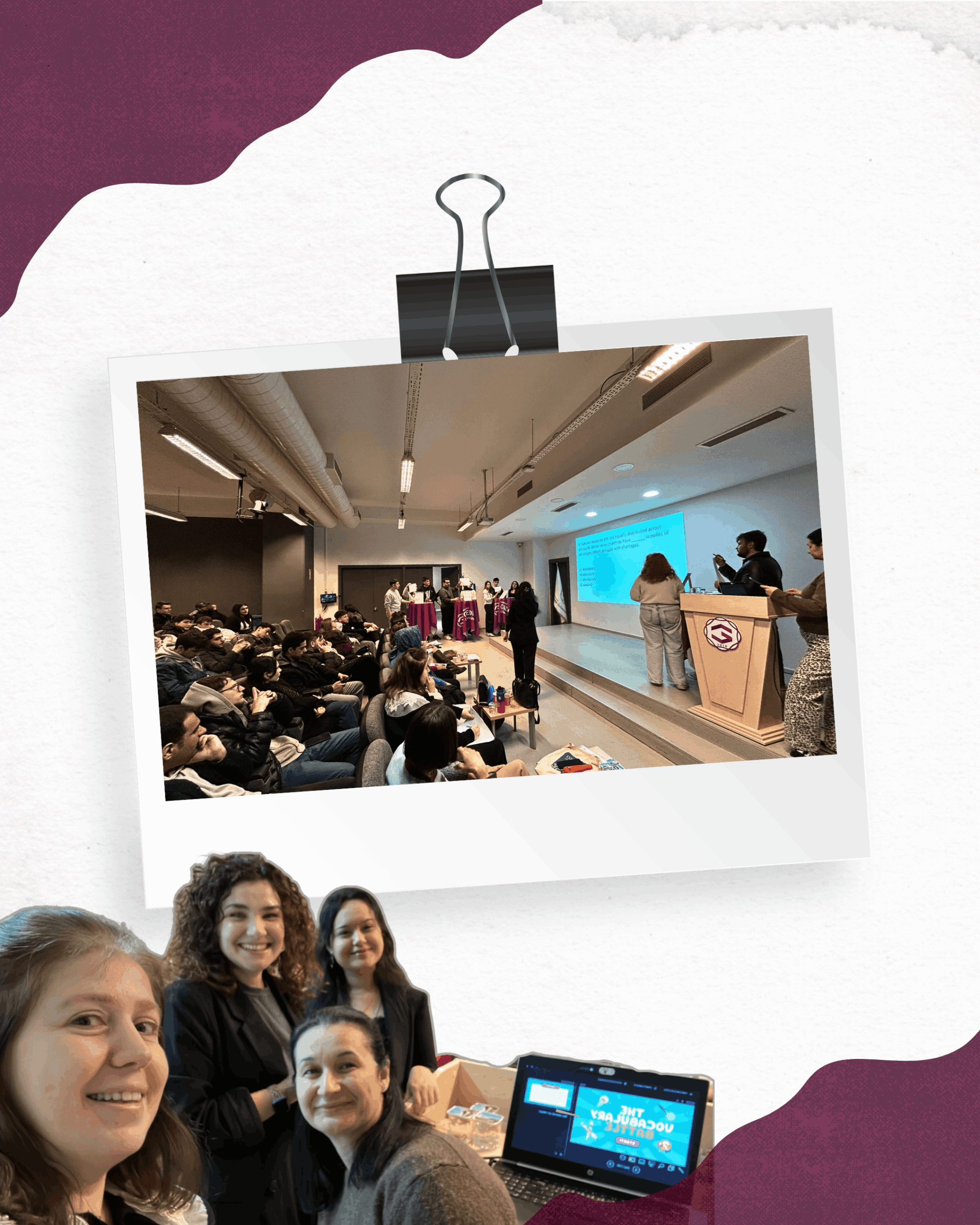 İstanbul Gedik Üniversitesi Yabancı Diller Yüksekokulu öğrencileri, 4 Mart 2026 tarihinde konferans salonunda düzenlenen Vocab Battle etkinliğinde bir araya gelerek kelimelerle yarıştı. Enerjik ve eğlenceli geçen etkinlikte öğrenciler, İngilizce kelime bilgilerini takım arkadaşlarıyla birlikte kullanarak hem yarıştı hem de keyifli vakit geçirdi.